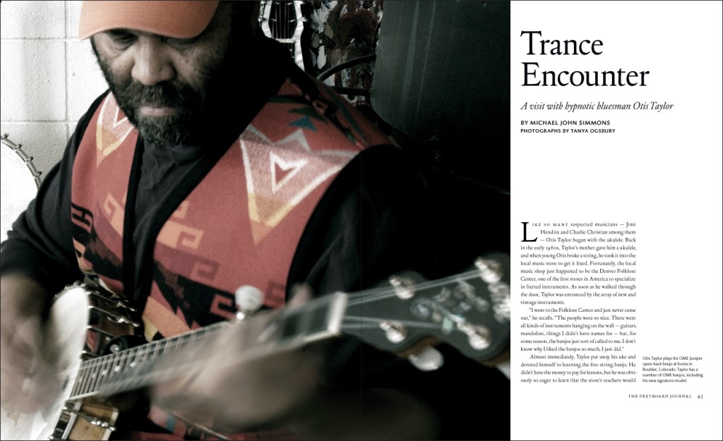 Like so many respected musicians–Jimi Hendrix and Charlie Christian among them–Otis Taylor began with the ukulele. Back in the early 1960s, Taylor’s mother gave him a ukulele, and when young Otis broke a string, he took it into the local music store to get it fixed. Fortunately, the local music shop just happened to be the Denver Folklore Center, one of the first stores in America to specialize in fretted instruments. As soon as he walked through the door, Taylor was entranced by the array of new and vintage instruments.